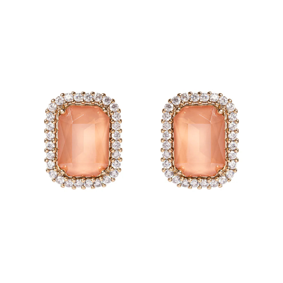 Un tocco di luce e delicatezza con gli orecchini della linea Faville Cipria firmati Sodini. La pietra centrale dal sofisticato tono cipria, dal taglio rettangolare, è incorniciata da una preziosa fila di cristalli bianchi luminosi, che ne esaltano la brillantezza e lo charme senza tempo.