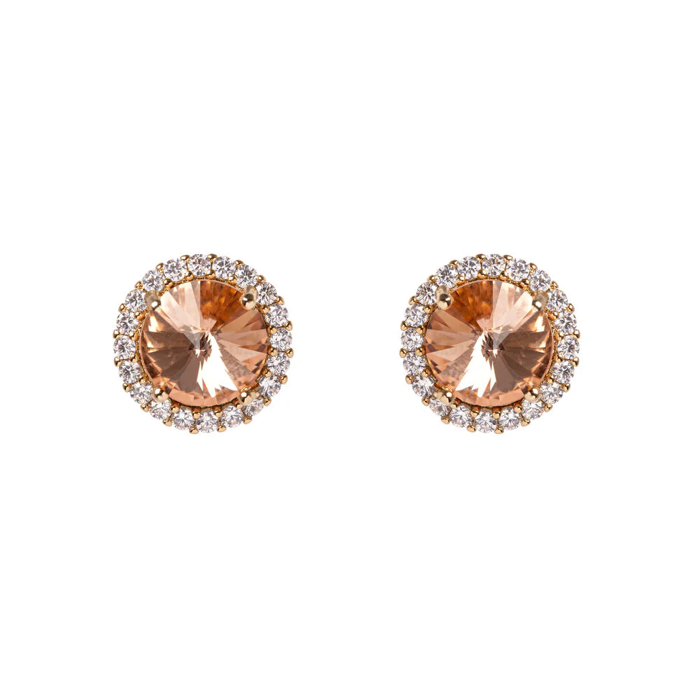 Un'eleganza luminosa in formato essenziale: questi orecchini a lobo rotondi della linea Faville Cipria by Sodini conquistano con la loro raffinatezza senza tempo. Al centro, una pietra cipria rotonda cattura la luce con delicatezza, incorniciata da un brillante pavé di cristalli bianchi, per un effetto prezioso ma sobrio.